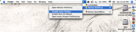 How to disable virus protection: The different virus protection programs available operate in a variety of ways, but most can be disabled by accessing a pull-down menu. For example, on MACs, an icon for virus protection is often displayed in the Menu Bar at the top of the screen.